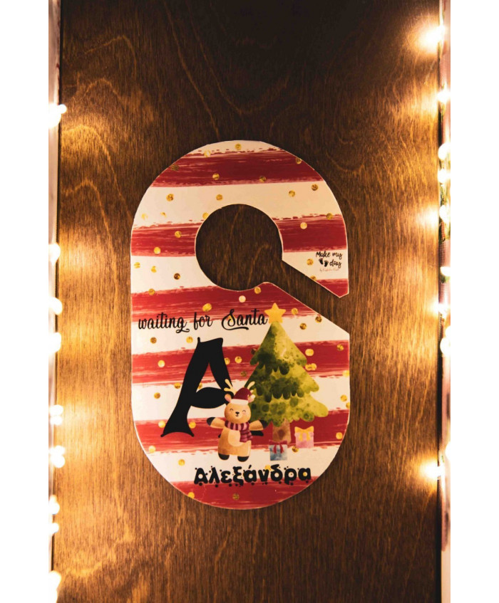 Christmas label προσωποποιημένο με το όνομα του παιδιού σας για την πόρτα του δωματίου του, τυπωμένο σε χοντρό χαρτόνι διπλής όψεως.Στα σχόλια της παραγγελίας μας αναφέρετε το όνομα του παιδού που θα θέλατε να έχει το καρτελάκι της πόρτας. Έρχεται μέσα σε τυπωμένο φάκελο με το ίδιο θέμα της ταμπελίτσας σας.Ένα δώρο που θα κάνει ευτυχισμένο κάθε παιδάκι που περιμένει με ανυπομονησία τον Άγιο Βασίλη...