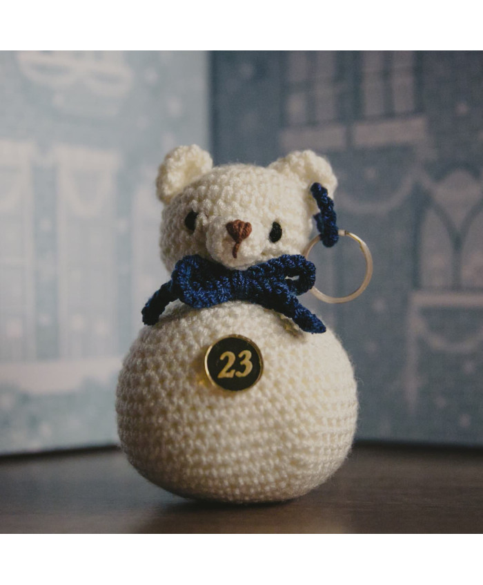 Χειροποίητο πλεκτό γούρι για το 2023, σε σχήμα μπάλα αρκουδάκι για καλοτυχία για τη νέα χρονιά που έρχεται. Μπορείτε να το κρεμάσετε στο δέντρο σας, στα κλειδιά σας ή να τοποθετηθεί πάνω σε επιφάνεια. Με ιβουάρ βαμβακερό νήμα και μπλε ρουα λεπτομέρειες καθώς και με χρυσό plexiglass το 23 θα στολίσει όμορφα το χώρο σας. Μία όμορφη και οικονομική πρόταση δώρου για τις γιορτές.
