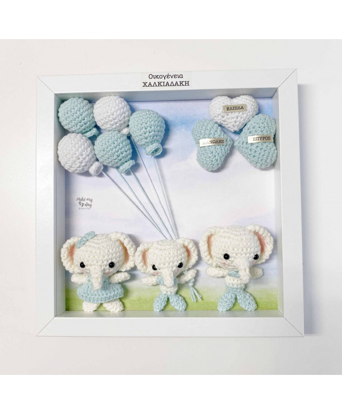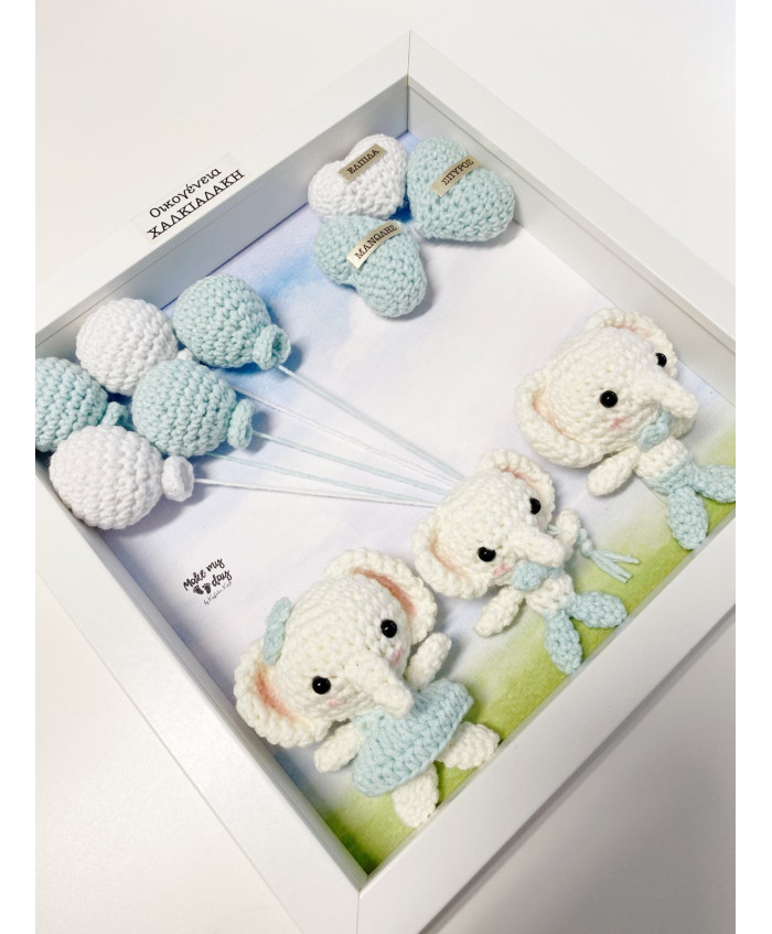 Crochet family frame μέντα ελεφαντάκια/3 μέλη
