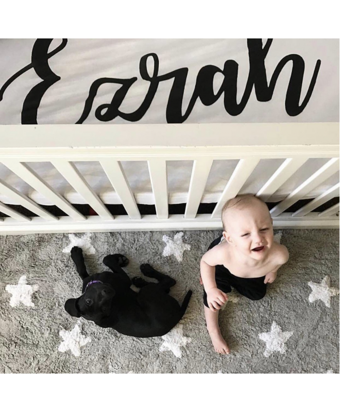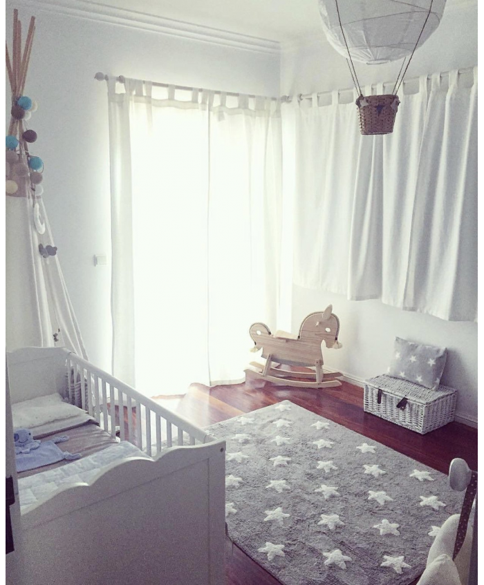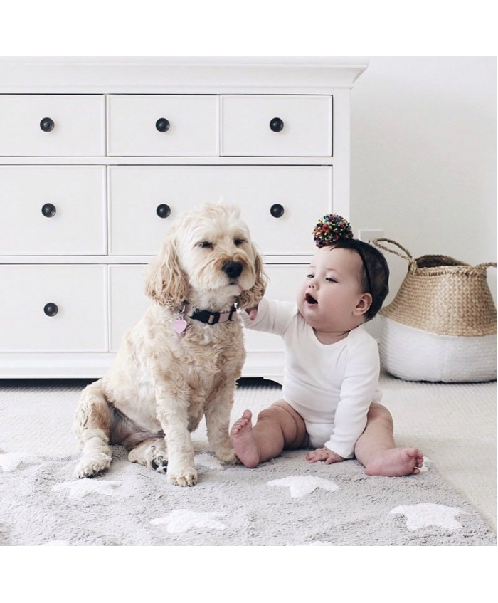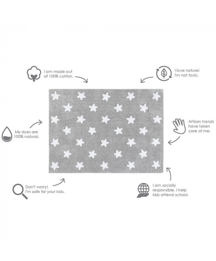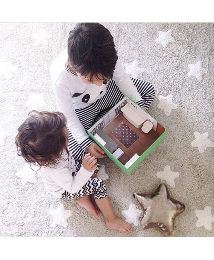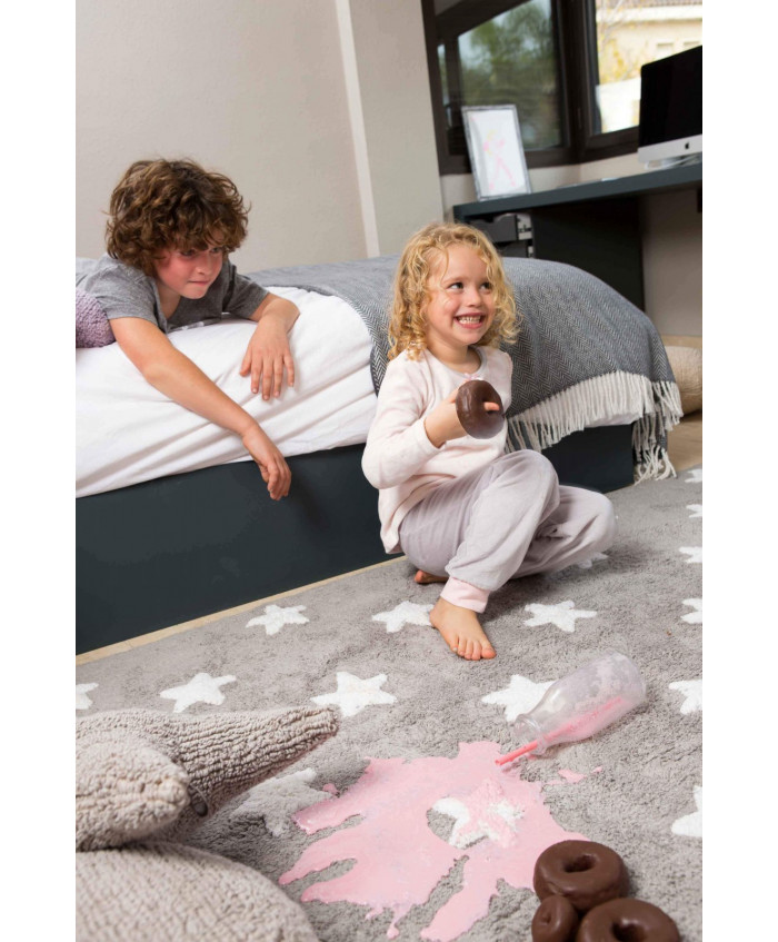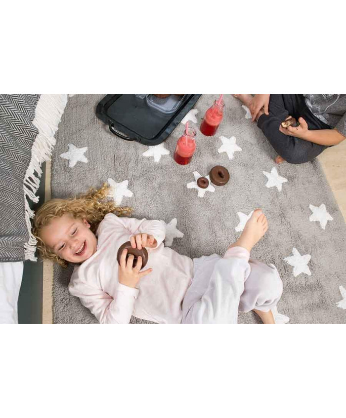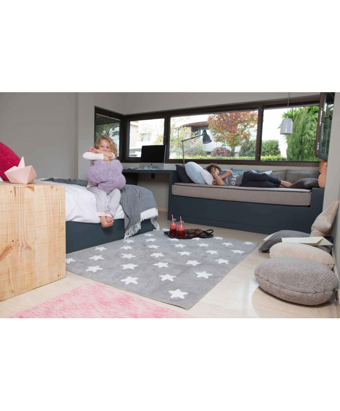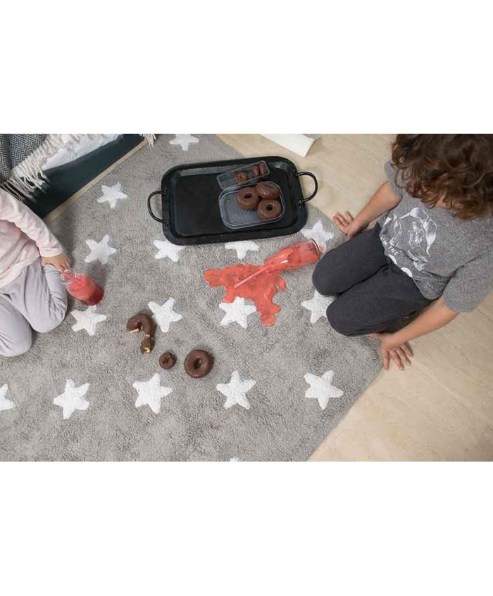 Lorena Canals. Χαλί δωματίου γκρι αστέρια λευκά/ grey stars white