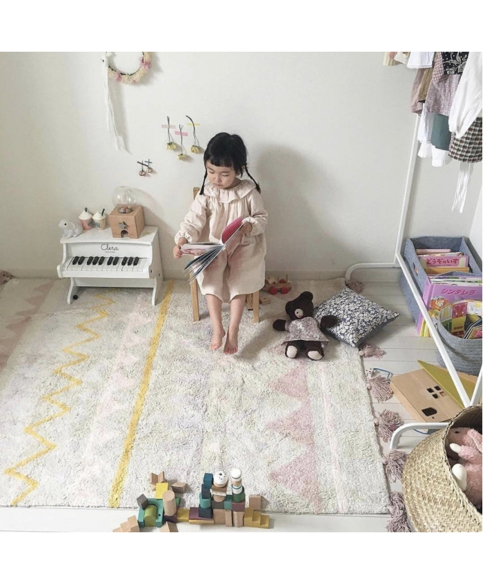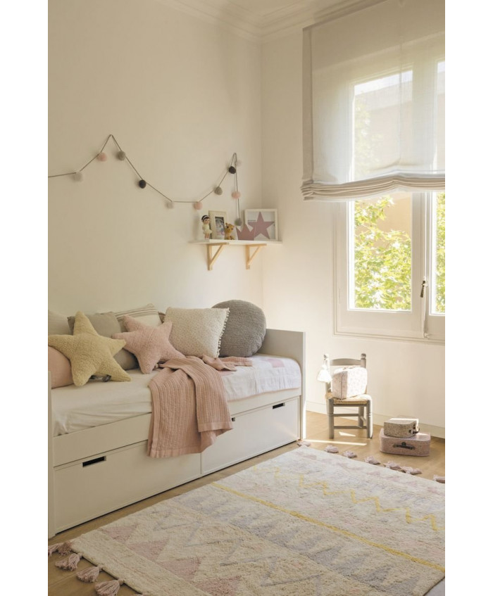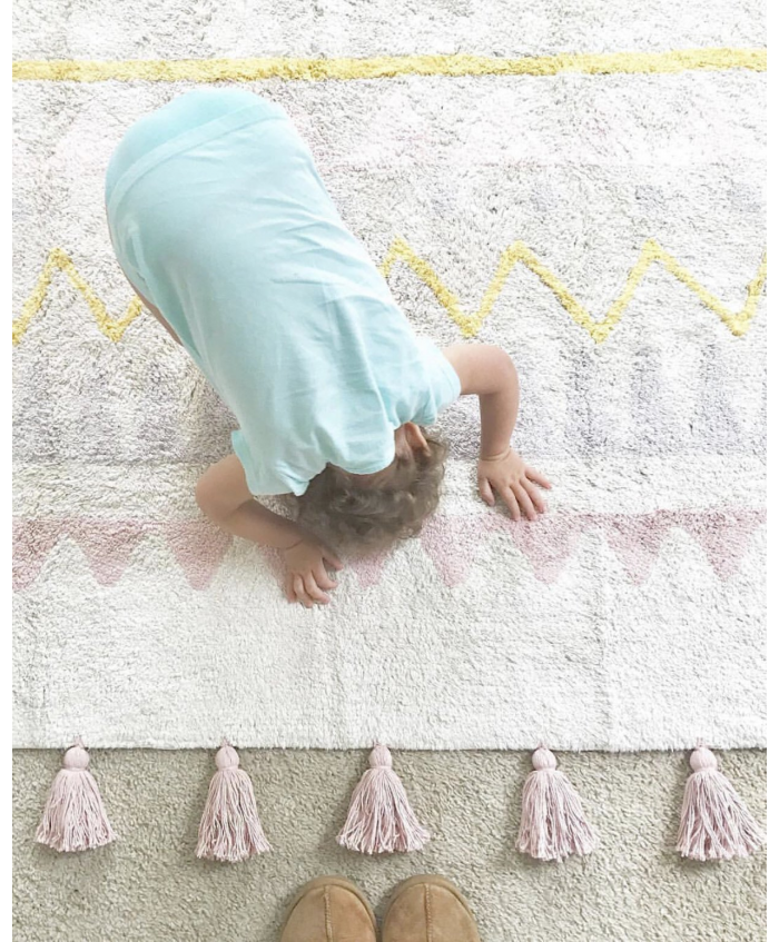 Πέρα από τη μοναδική τους ποιότητα και ποικιλία, τα χαλιά της Lorena Canals μπορούν να πλυθούν εύκολα και γρήγορα στο πλυντήριο του σπιτιού σας! Επιπλέον, αποτελούν την πιο σωστή επιλογή για τα παιδιά, καθώς χρησιμοποιούν μόνο ελεγμένα υλικά και πληρούν όλες τις προδιαγραφές ασφαλείας. Σε απαλά παστέλ χρώματα, αυτό το χαλί είναι από τα λίγα χαλιά με κρόσσια που μπορούν να πλυθούν εύκολα. Χειροποίητο από 100% φυσικό βαμβάκι και μη τοξικές βαφές. Πλένεται εύκολα στο πλυντήριο. Αυτό το προϊόν πληροί όλες τις προδιαγραφές ποιότητας και ασφαλείας για παιδιά, ενώ διαθέτει ISO 9001, ISO 14001, ISO 18001 και πιστοποιητικά AITEX. Διαστάσεις 140 x 200 εκ.
