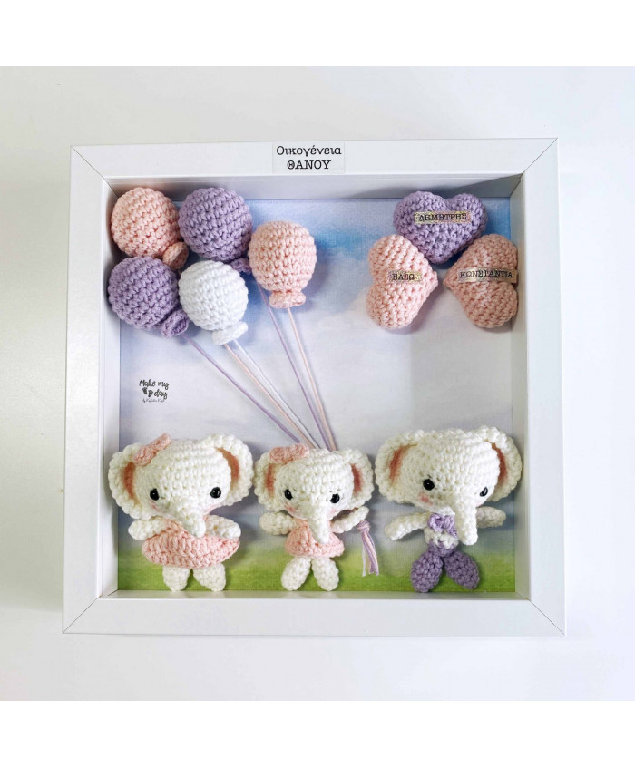 - Κωδικός Προϊόντος: crochet-family-frame-3elephants-purple-pink