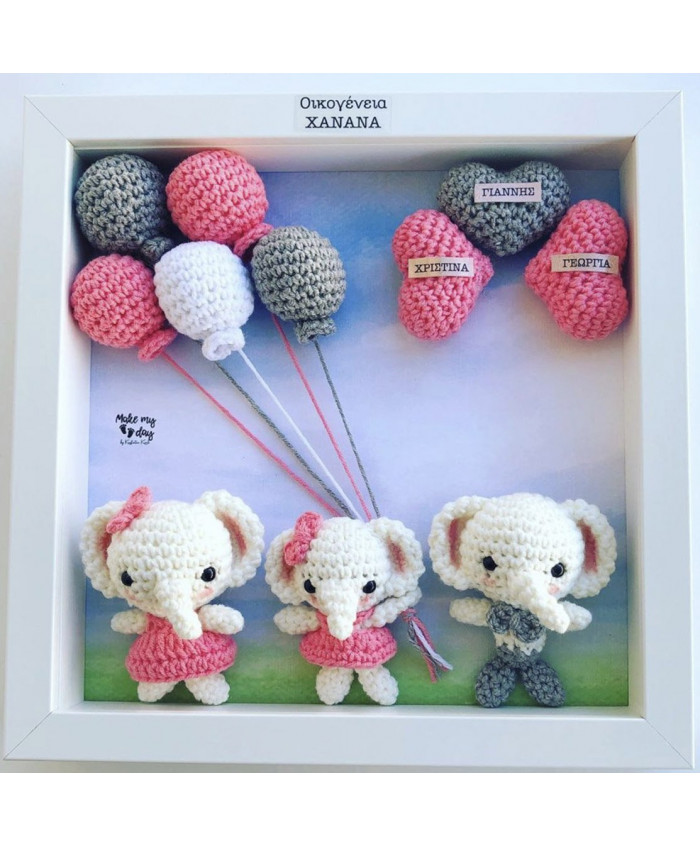 Ετικέτες: Crochet, family, frame, personalized, personalised gifts, newborn, δώρο μαιευτηρίου, βάπτιση, γενέθλια, οικογένεια, καδράκι, ζωάκια, μπαλόνια, καρδιές, ελεφαντάκια