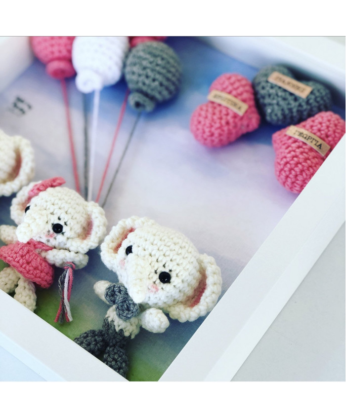 Crochet family frame ροζ-γκρι ελεφαντάκια/3 μέλη