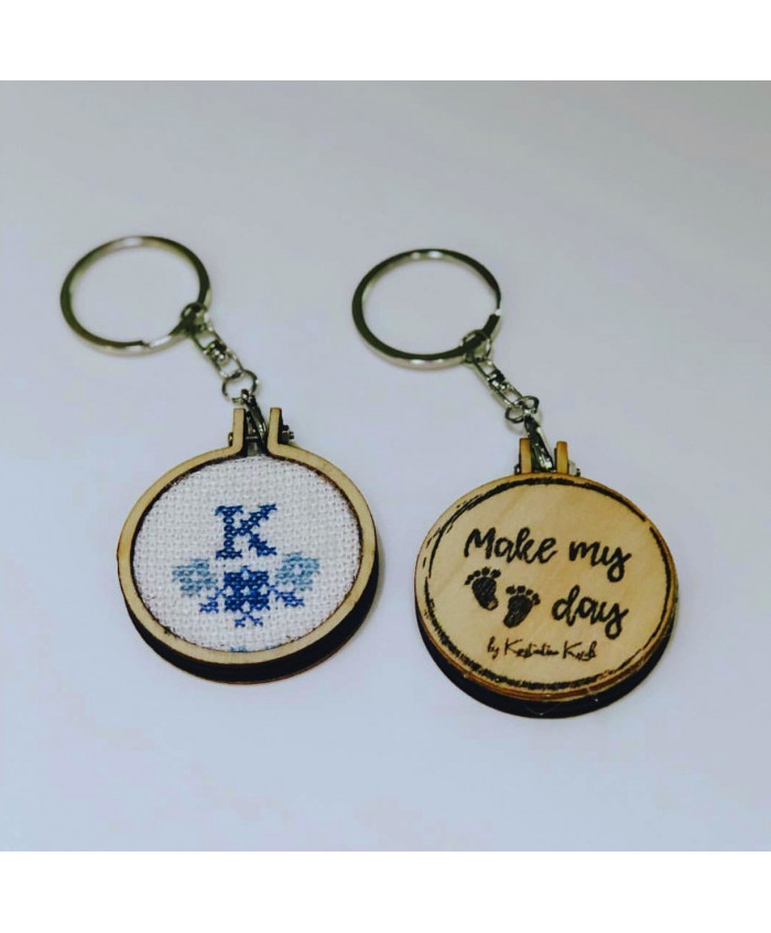 Ξύλινο μπρελόκ με κεντημένο το μονόγραμμα διαμέτρου 5εκ.
