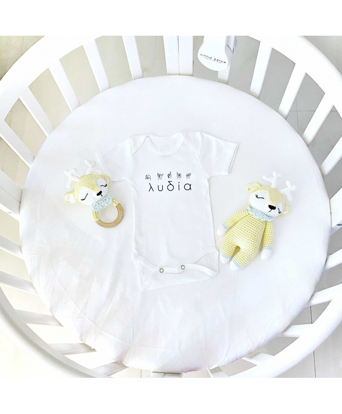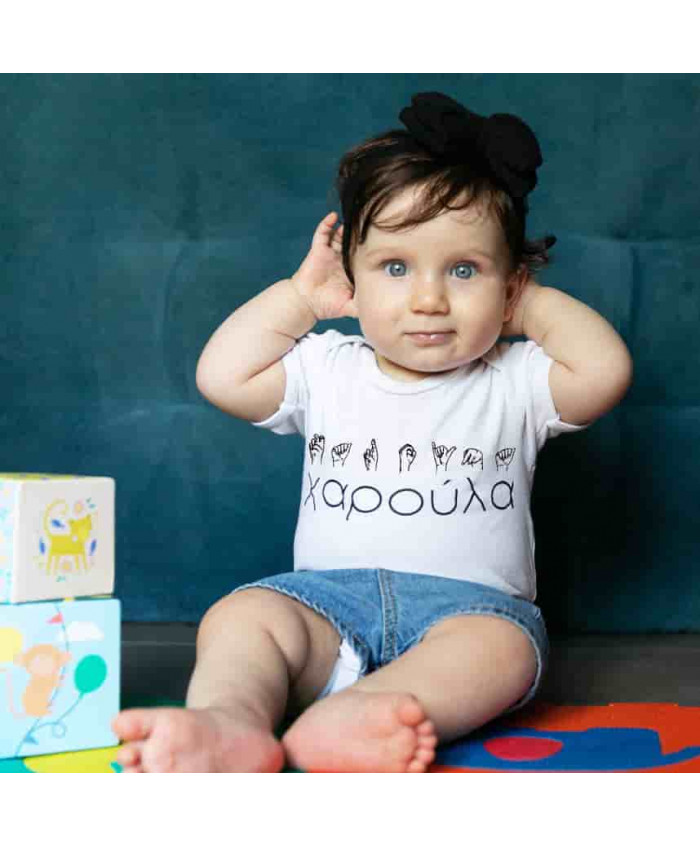 Τι πιο γλυκό από ένα ολόσωμο φορμάκι ειδικά φτιαγμένο για το δικό σας μωράκι αφού τυπώνεται με το όνομά του και στη νοηματική γλώσσα. Μια γλώσσα που λες πολλά χωρίς να μιλάς.