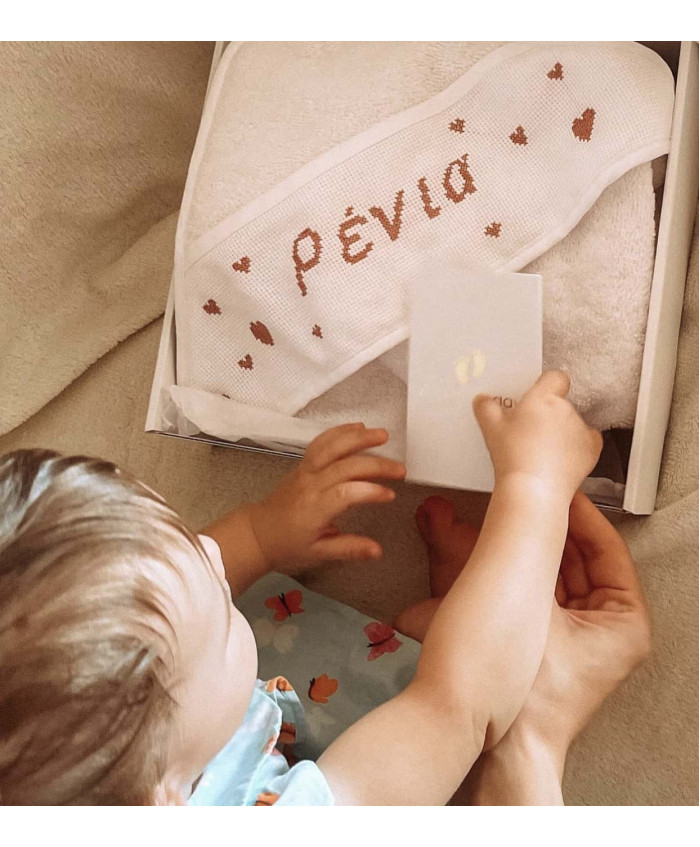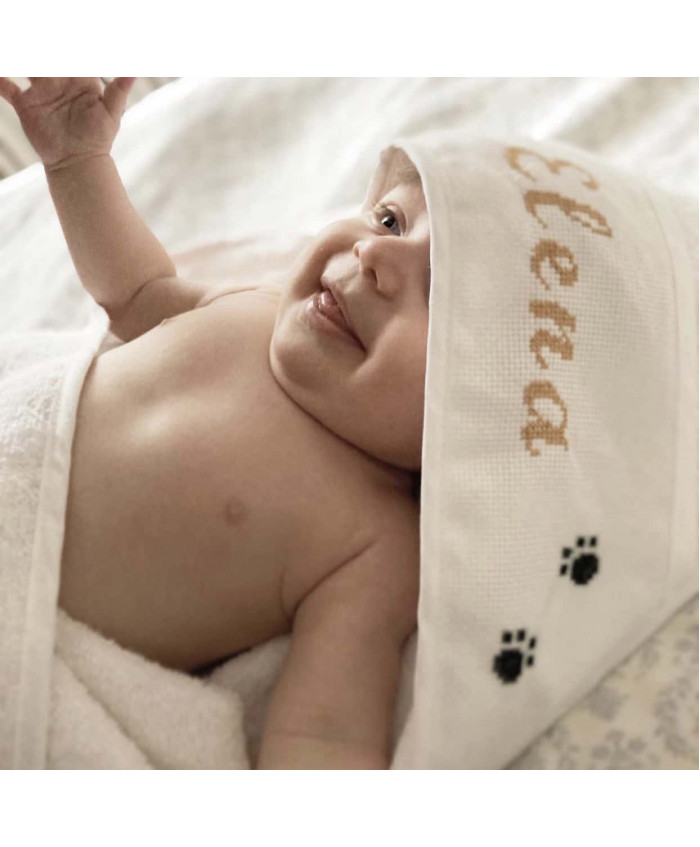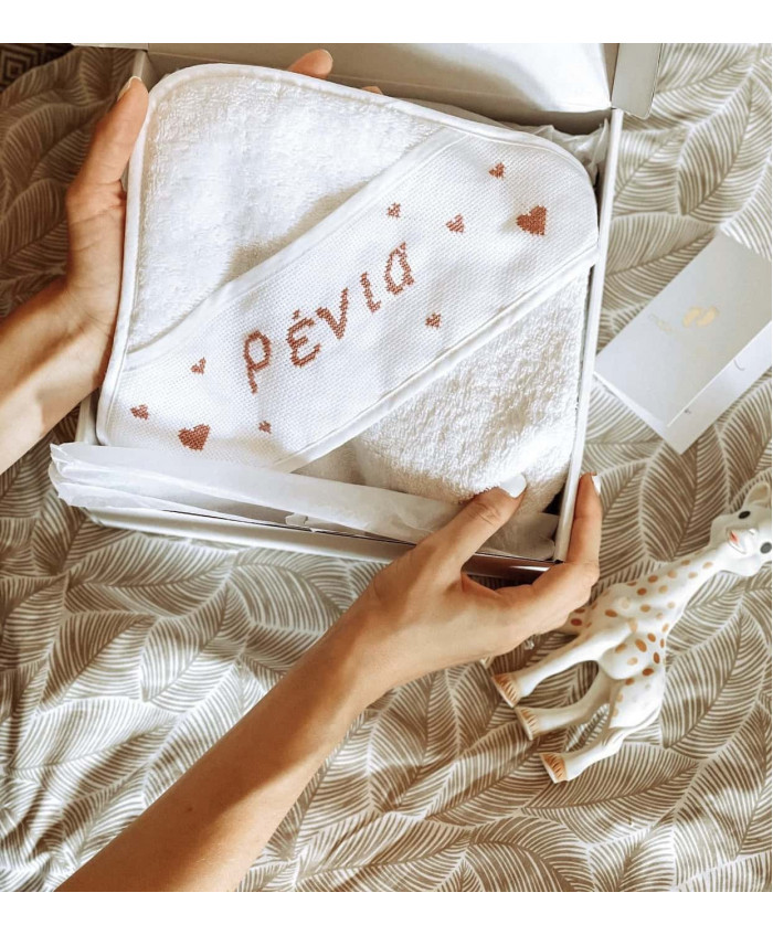 Βαμβακερό βρεφικό μπουρνούζι κάπα για τα μωράκια σας με κεντημένο στο χέρι το όνομα του παιδιού σας στην κουκούλα.