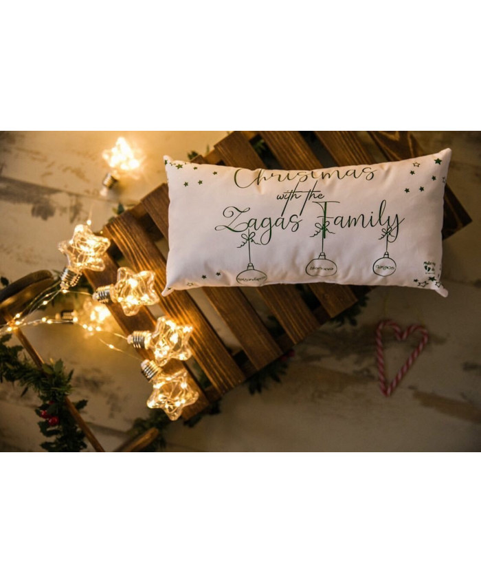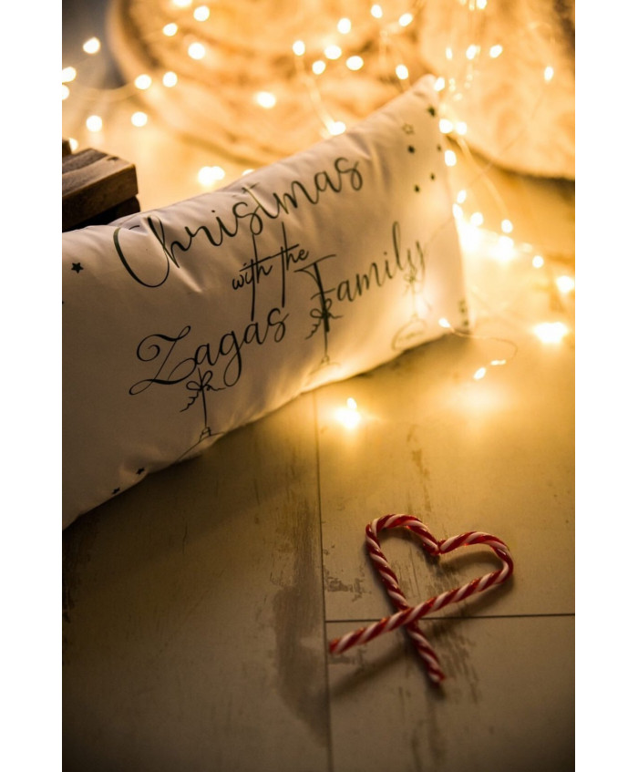 Προσωποποιημένο Christmas family μαξιλαράκι με τυπωμένο το επώνυμο της οικογένειάς σας και τα ονόματα των μελών της,διαστάσεων 20x40 εκ. Ένα πρωτότυπο και ιδιαίτερο δώρο για τα αγαπημένα σας πρόσωπα τις ημέρες των εορτών...
