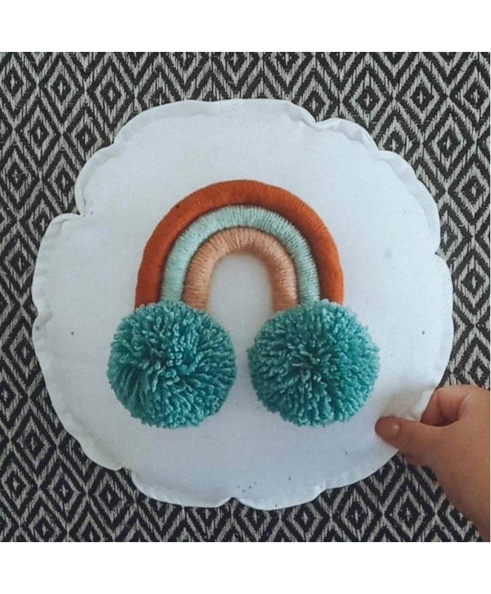 Το αγαπημένο σας macrame rainbow τώρα και σε διακοσμητικό μαξιλαράκι το οποίο θα ολοκληρώσει τη διακόσμηση του δωματίου του μικρού σας αστεριού.Χειροποίητο στρογγυλό υφασμάτινο μαξιλάρι από βαμβακερό ύφασμα διαμέτρου 30 εκ με ραμμένο macrame rainbow 3 σειρών με πον πον...