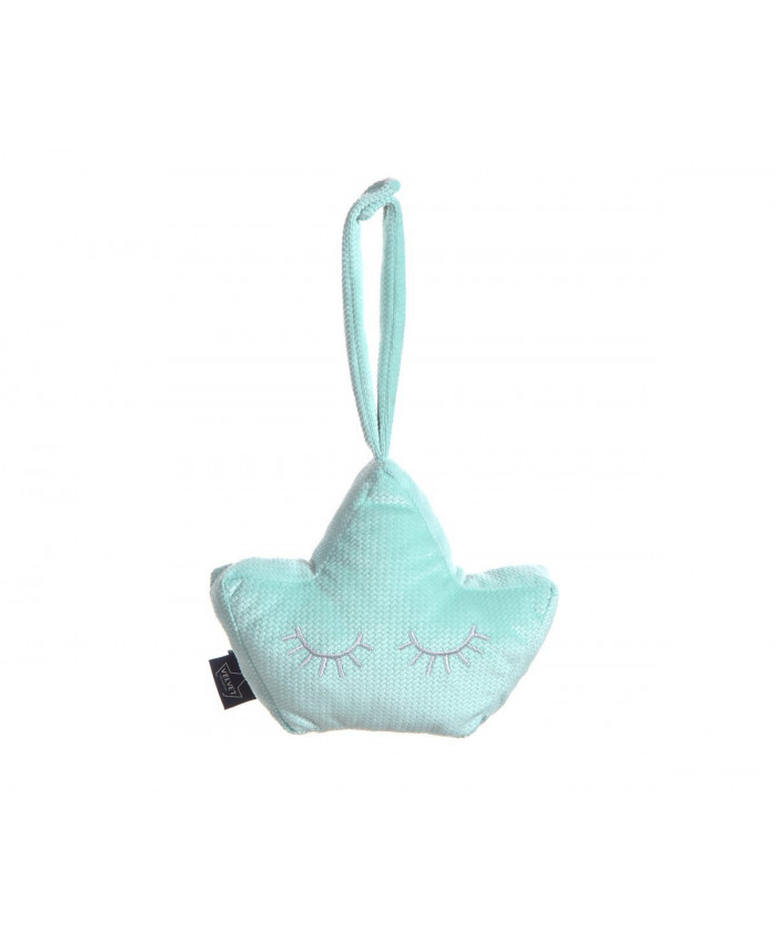 Βελούδινη κουδουνίστρα Κορώνα σε μοναδικό Mint χρώμα,το πιο Trend χρώμα της καινούργια σεζόν…Με μακρύ κλίπ-κορδόνι ώστε να προσαρμόζεται στο καρότσι,στην κούνια ,στο Traveller,στο Relax ώστε να συντροφεύει το μωράκι σε όλες του τις στιγμές…Μέγεθος (16cmx12cm)..