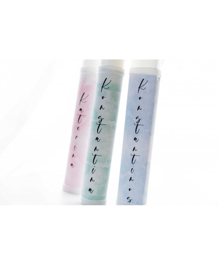 Επιλέξτε το χρώμα του φόντου και στα σχόλια της παραγγελίας μας γράφετε το όνομα που θα θέλετε να έχει η λαμπάδα.