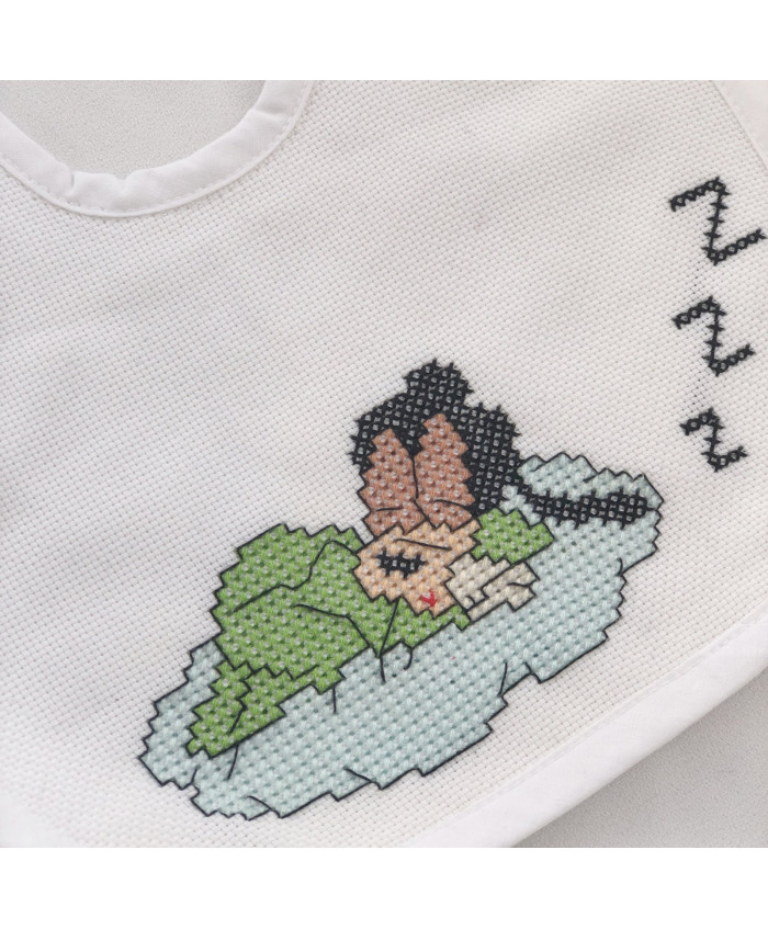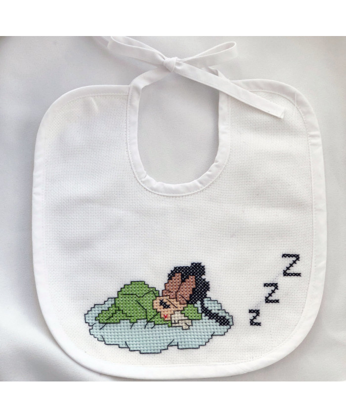 Κεντημένη βρεφική σαλιάρα με θέμα το Γκούφυ, κεντημένη σε ύφασμα εταμίν με μουλινέδες dmc, και βαμβακερό ύφασμα από την πίσω πλευρά.