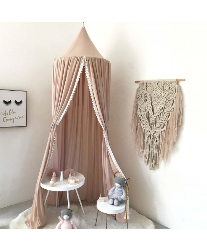 Μία μοναδική κουνουπιέρα της εταιρείας Spinkie για τα boho δωμάτια σας. Η κουνουπιέρα μπορεί να τοποθετηθεί πάνω από την κούνια ή το κρεβάτι του παιδιού σας αλλά ακόμη και σε κάποια γωνιά του δωματίου του δημιουργώντας μια ονειρεμένη φωλίτσα παιχνιδιού και χαλάρωσης. Κατασκευασμένη από ύφασμα georgette και στο τελείωμά της με μια μοναδική δαντέλα θα δώσει μια ξεχωριστή νότα στο δωμάτιο των μικρών σας αστεριών.Τοποθετείται από την οροφή με ένα γάντζο και στη συνέχεια την κρεμάτε από το υφασμάτινο λουράκι της..Το μήκος της είναι 274 εκ και η διάμετρός της 63 εκ...