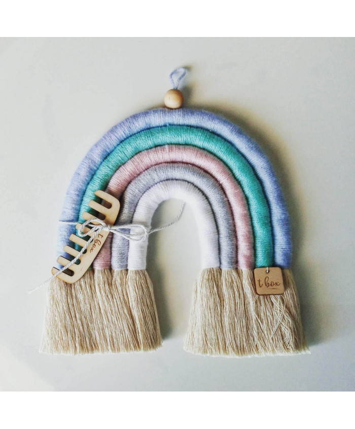 Macrame rainbow σε πολύχρωμες αποχρώσεις, φτιαγμένο όλο στο χέρι με κορδόνι από 100% ανακυκλωμένο οργανικό βαμβάκι και τυλιγμένο με υποαλλεργικά βρεφικά νήματα για την διακόσμηση του παιδικού σας δωματίου.Αποτελούμενο από 5 stripes σε λευκές-γκρι-ροζ-μέντα-σιελ αποχρώσεις και συνολικής διάστασης 20x20εκ.Οι διαστάσεις από τα rainbows ενδέχεται να διαφέρουν ανάλογα με το νήμα...